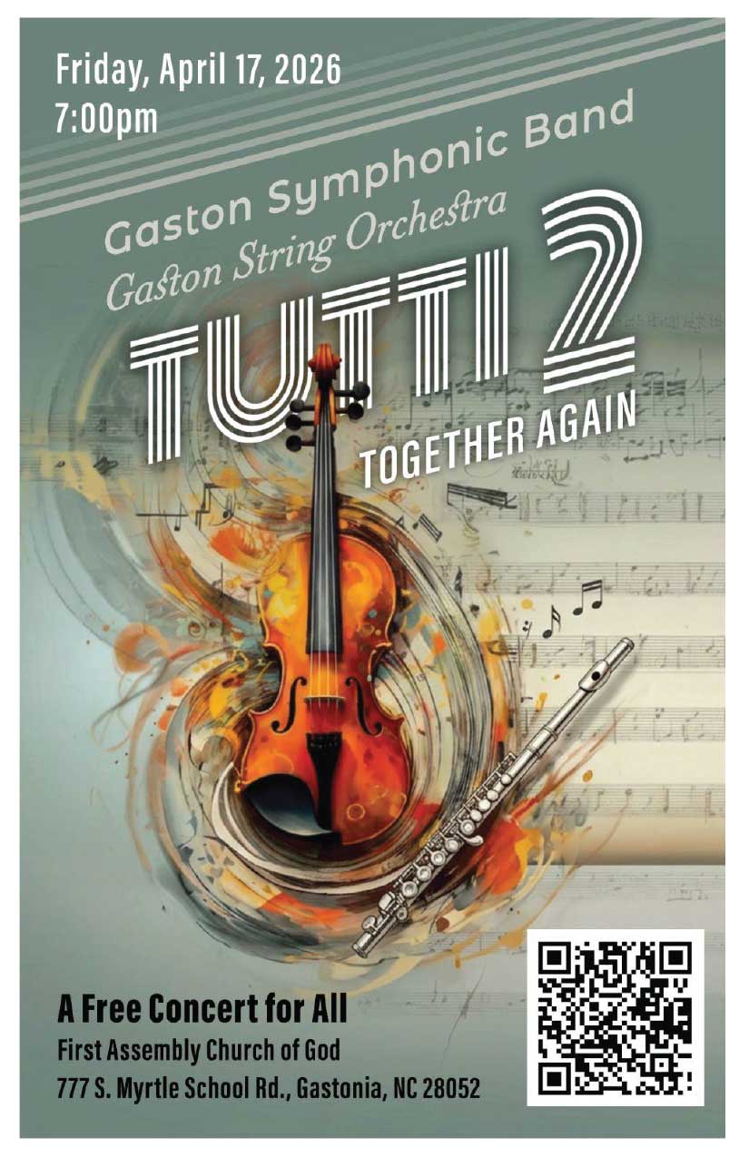 Gaston Symphonic Band is joined by Gaston String Orchestra for this annual spring concert. It is a free seasonal performance that featuring a mix of classical and popular music.